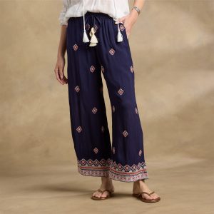 Our pleated linen trousers offer the most simply sophisticated silhouette. with wide-leg styling. side stripes and four pockets. Machine wash. Imported. Exclusive. Sizes 2?C16. 31 inseam.