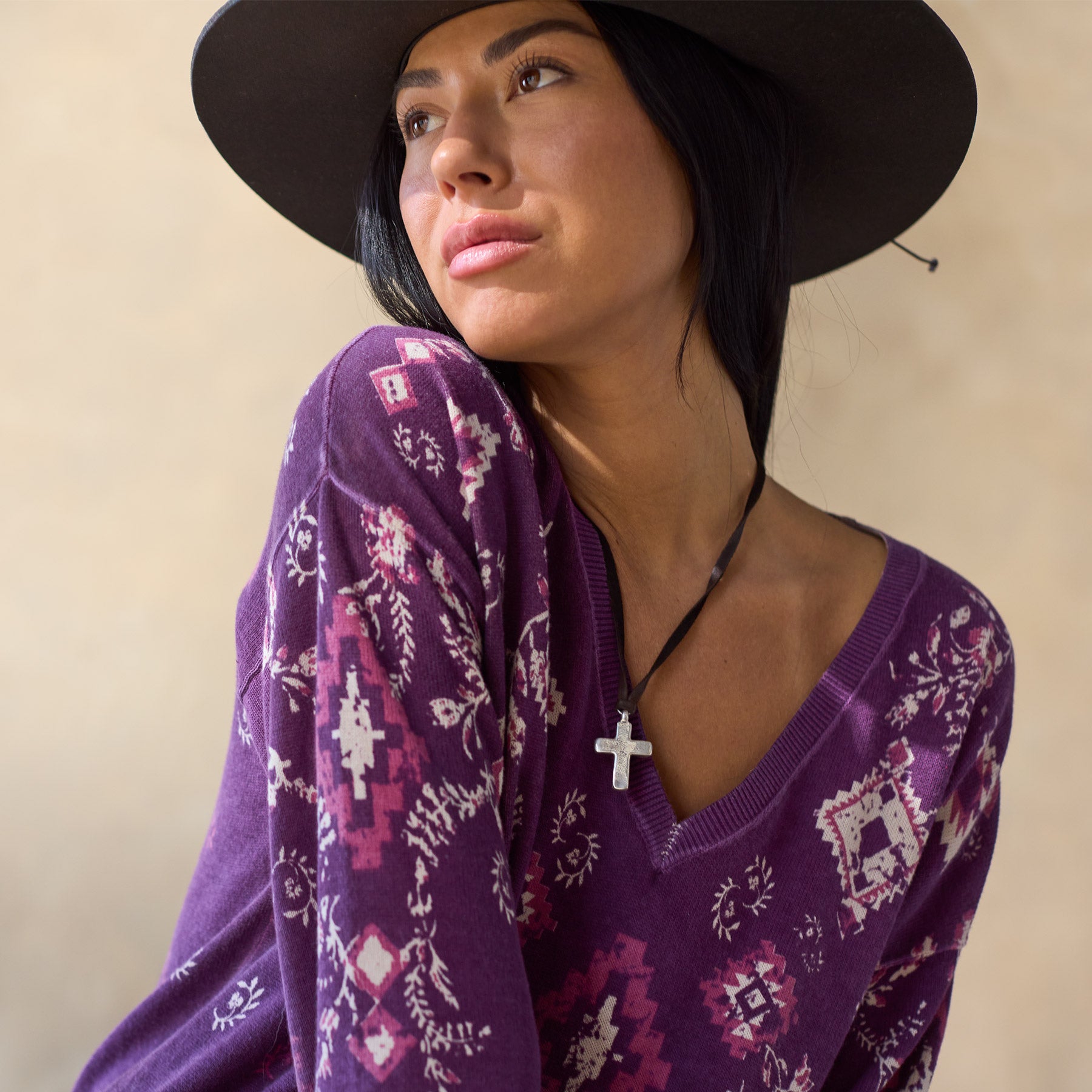 A new Sundance classic. with bandana/floral print front and back and hand-embroidered embellishment at the open V-neckline. Exposed seams. rib trim. relaxed fit. Cotton. Hand wash. Imported. Exclusive. Sizes XXS (00). XS (0–2). S (4–6). M (8–10). L (12–14). XL (16–18). Approx. 22l.
