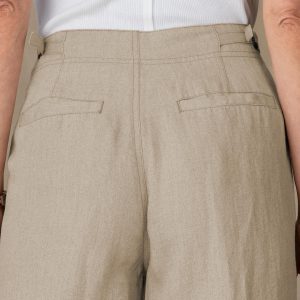 Our easy. menswear inspired wide leg pants with two front seam pockets. two back patch pockets. Zip front. Linen. Machine wash. Imported. Exclusive. Sizes 2-16. 32.5 inseam.