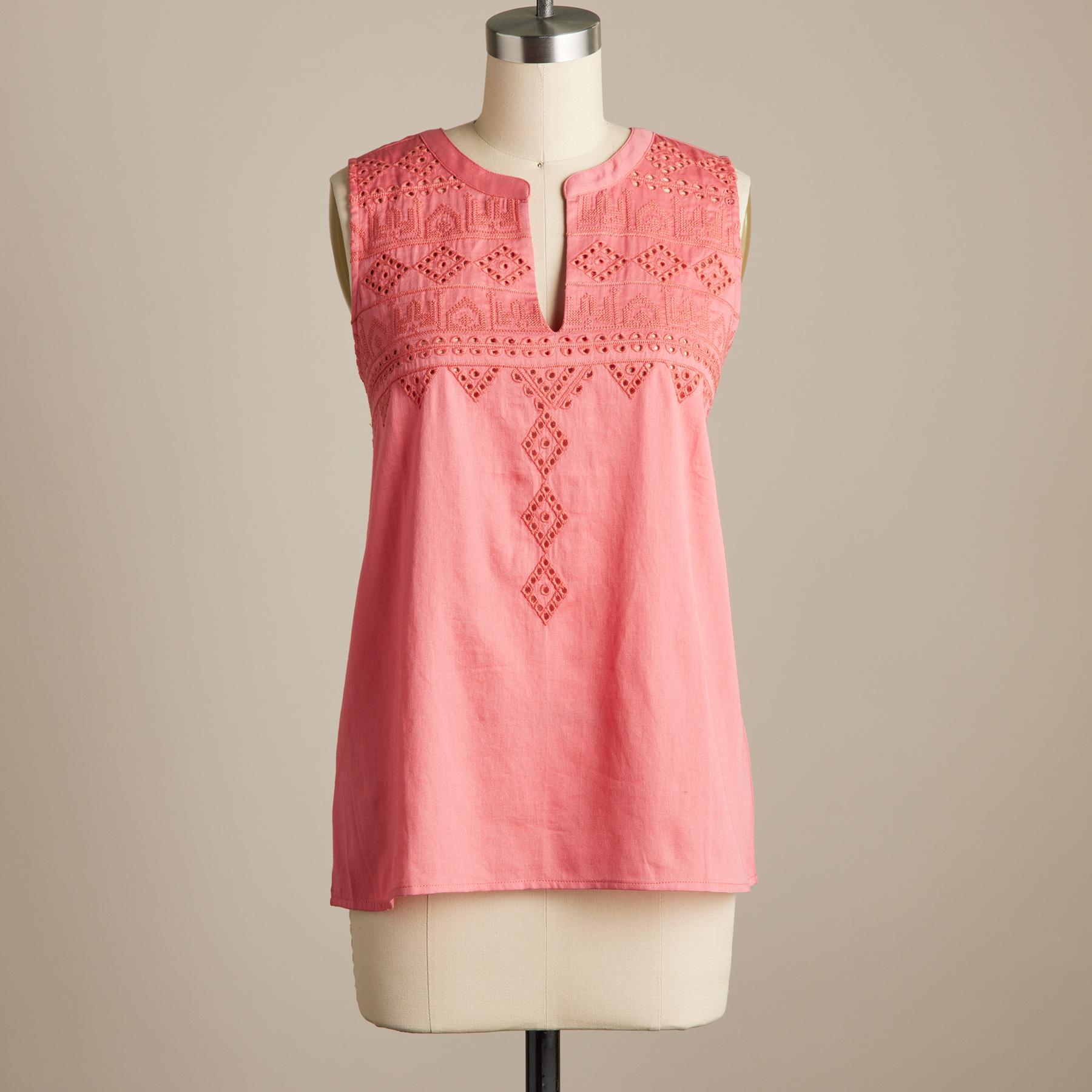 Vintage-inspired. cut-out embroidery accentuates the simple grace of this lightweight. airy tank with an easy. pull-over fit and notch neckline. Cotton. Machine. Imported. Sizes XS (0 to 2). S (4 to 6). M (8 to 10). L (12 to 14). XL (16 to 18). XXL (20 to 22). Front approx. 25-3/4L.