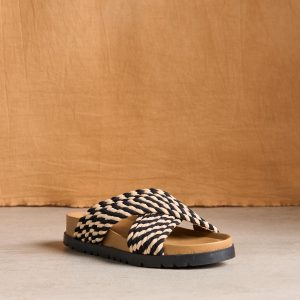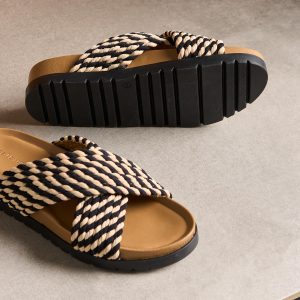 Handmade by artisans. these two-tone platform slides have a leather lining and flexible outsole. perfect for packing. Viscose. Imported. Whole sizes 37-41. 37 (US 6). 38 (US 7). 39 (US 8). 40 (US 9). 41 (US 10).