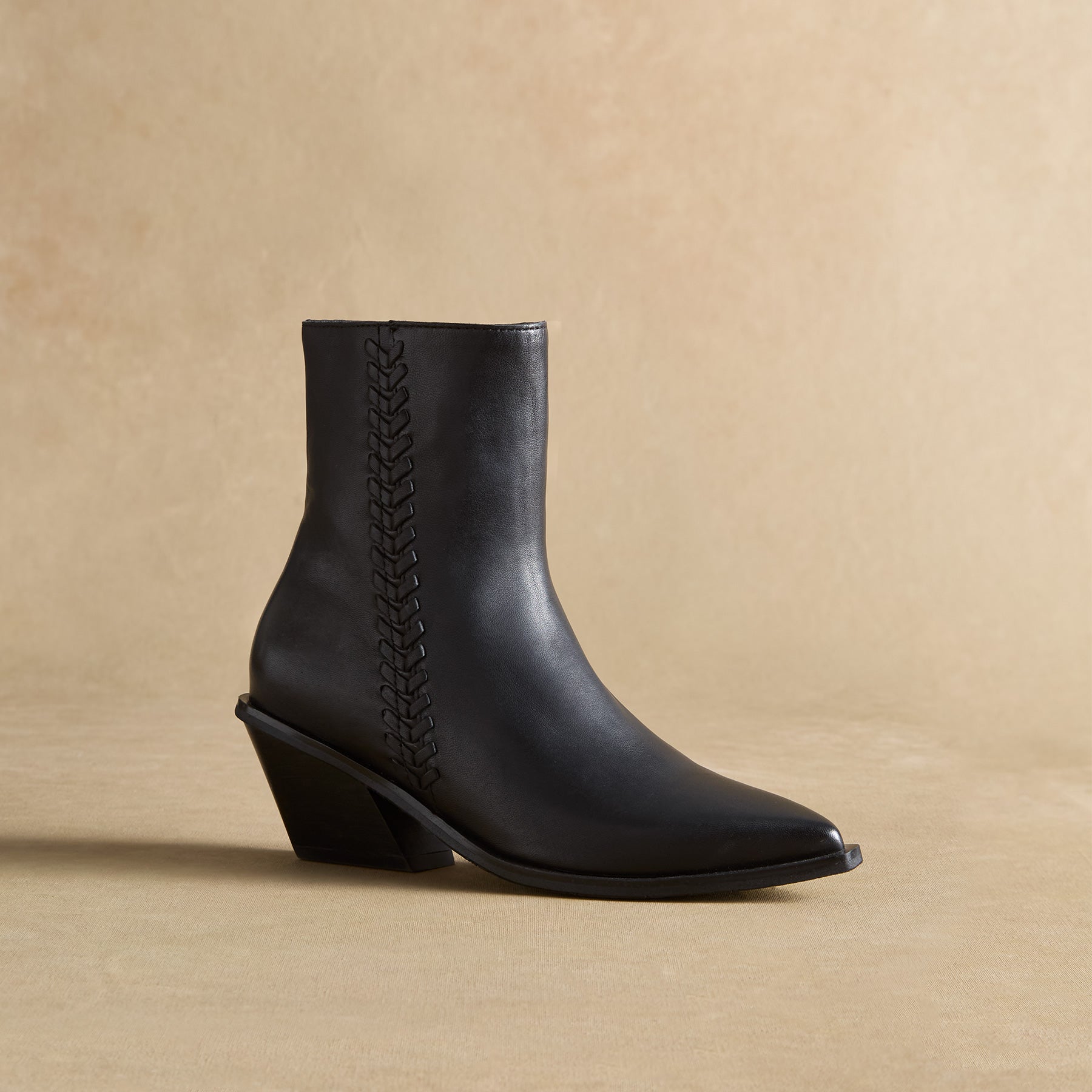 Whipstitch braid detail is the star of these dashing. handcrafted boots. Leather. Imported. Exclusive. Whole sizes 36 (US 5). 37 (US 6). 38 (US 7). 39 (US 8). 40 (US 9). 41 (US 10). 2 heel.